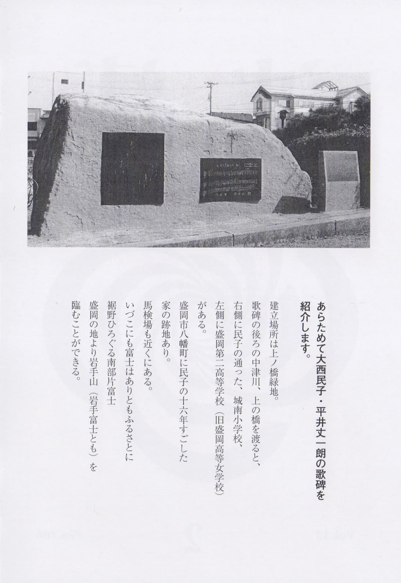 ●『大西民子の歌碑』・中島やよひ (記)
